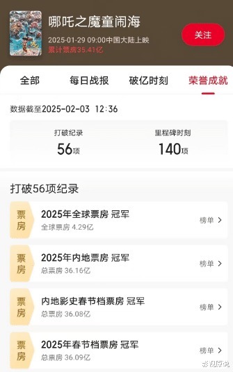 不过在那之前,该片已经接连率先打破了56项票房纪录,像刚刚打破的春节档最高票房纪录,还有就是全球年度票房冠军等等。毫无疑问,《哪吒2》将会成为中国最成功的电影。